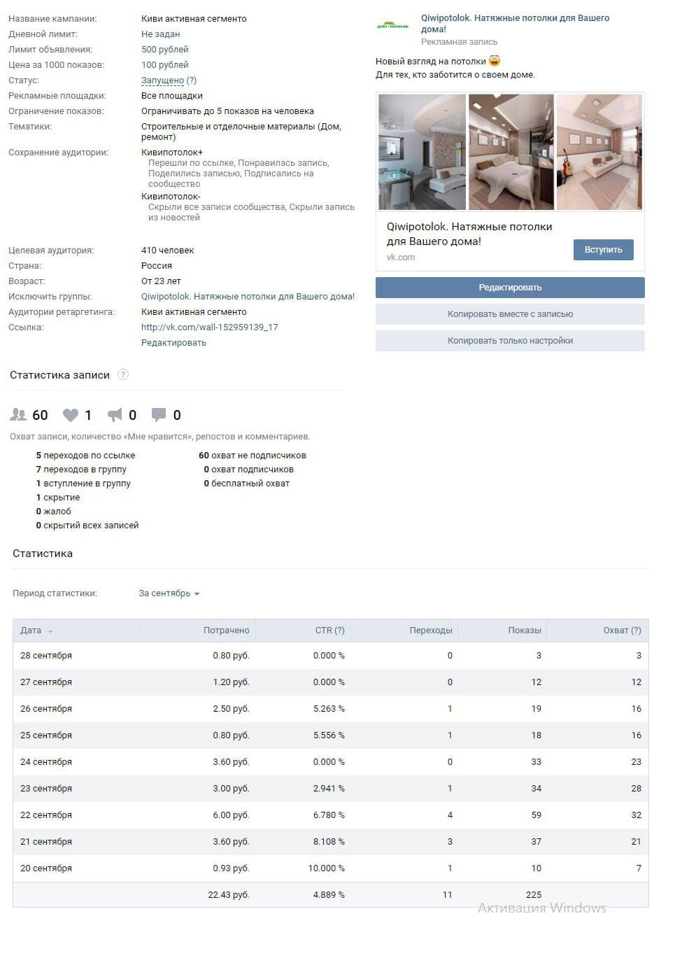 В конце августа к нам обратилась компания по потолкам Qiwipotolok. На начальном этапе было оформлено сообщество, и готовилась площадка для дальнейшего продвижения. Были отрисованы аватарки, и создано wiki-меню с разделами, ведущими на сайт.