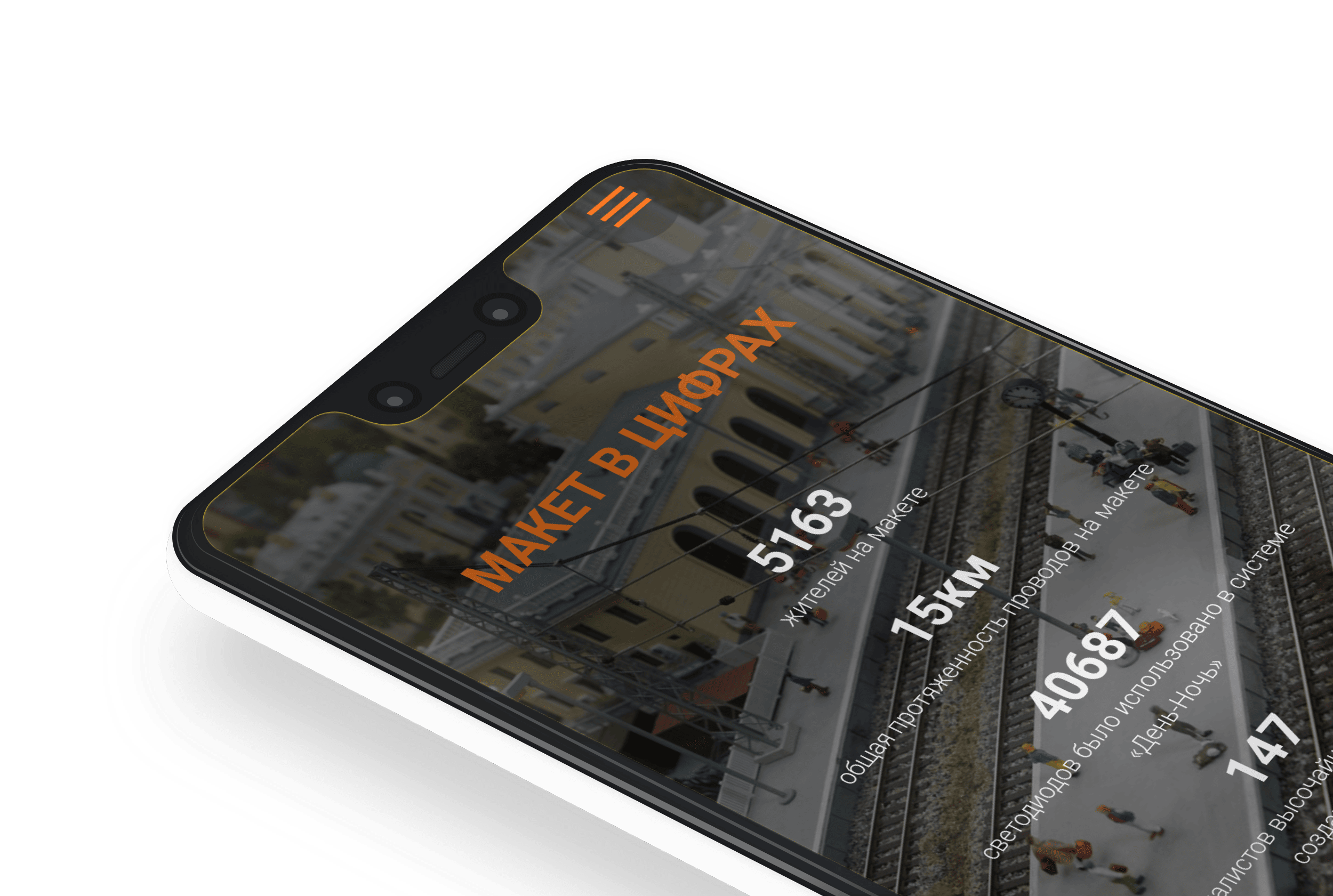 Сайт получился объемным по наполнению, на нем отображены: процесс создания макета, информация о городах изображенных на макете, факты о макете в цифрах, а так же описаны возможности макета.