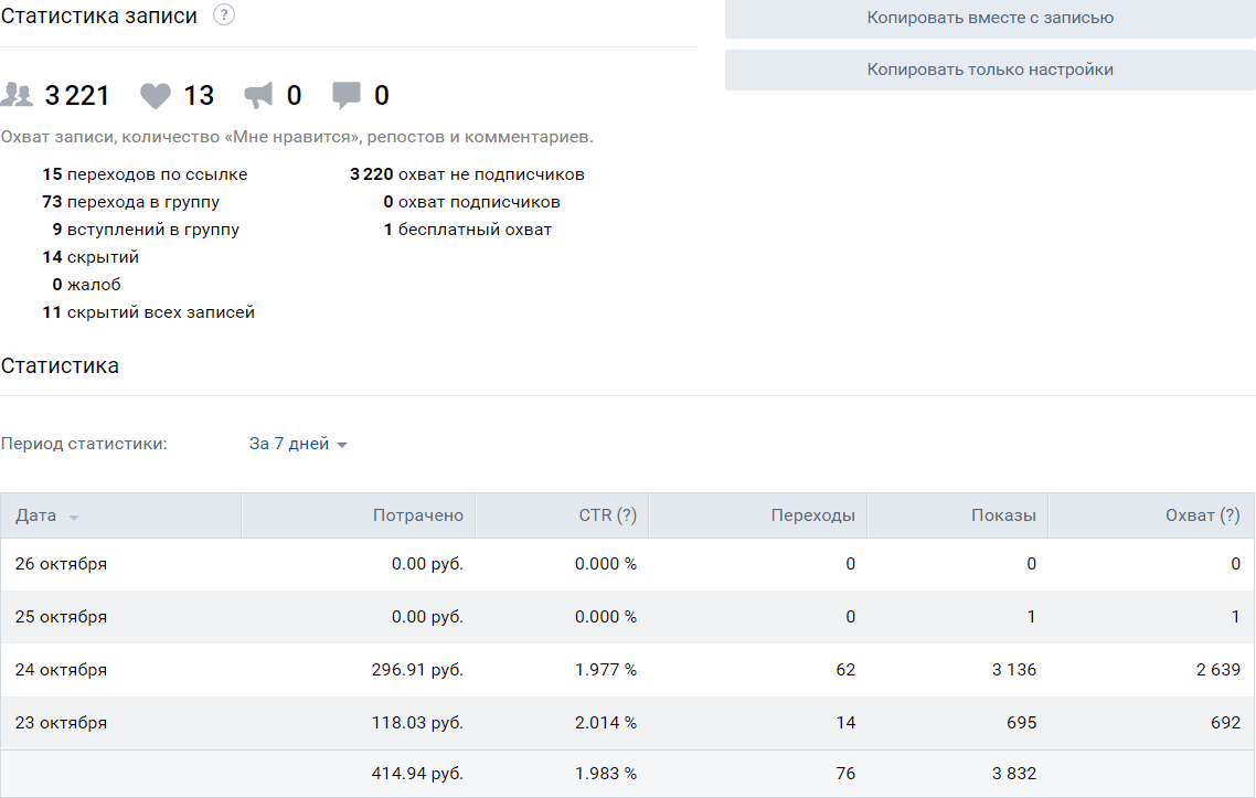 Увеличили ежедневный охват сообщества (не считая рекламного) в 10 раз, публикуя по два поста в сутки.